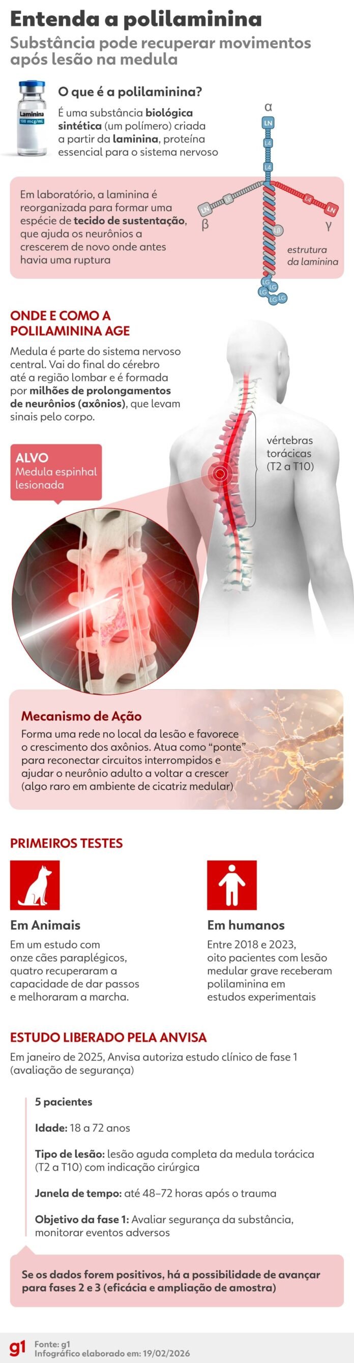 O especialista afirma que está otimista com a pesquisa, mas que é preciso cautela ao usar e acreditar que a polilaminina como remédio é uma realidade. E que a chance de um estudo que funcionou em modelo, como é o caso, funcionar em grupos maiores, é de 20%. “Estamos falando de ciência e, por isso, é preciso muito cuidado”, explica.